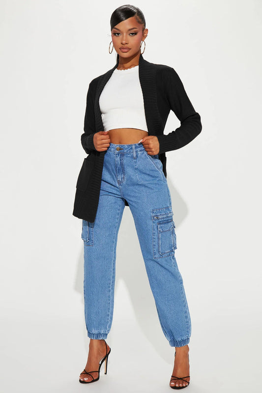 Black Ribbed Cardigan - Easy Throw-On Style