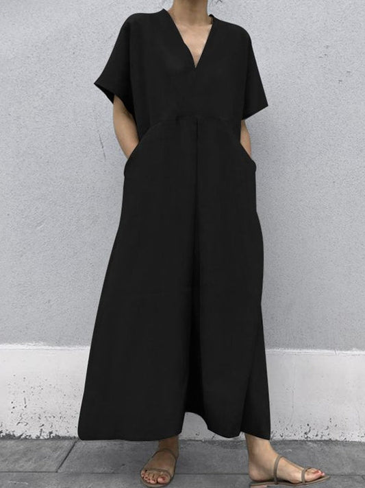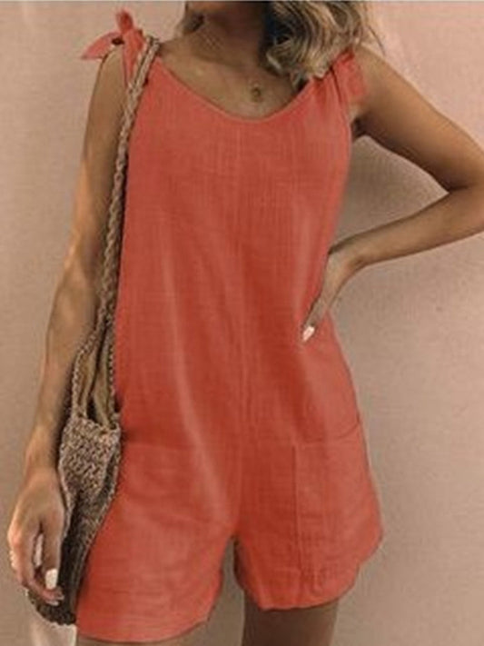 Chic Solid Color Cotton-Linen Jumpsuit with Patch Pockets
