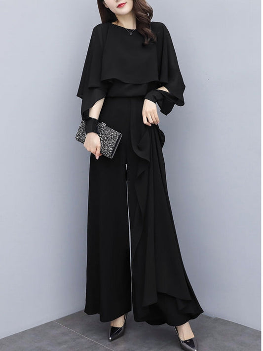 Casual Chiffon Shirt and Wide Leg Pants Suit Set