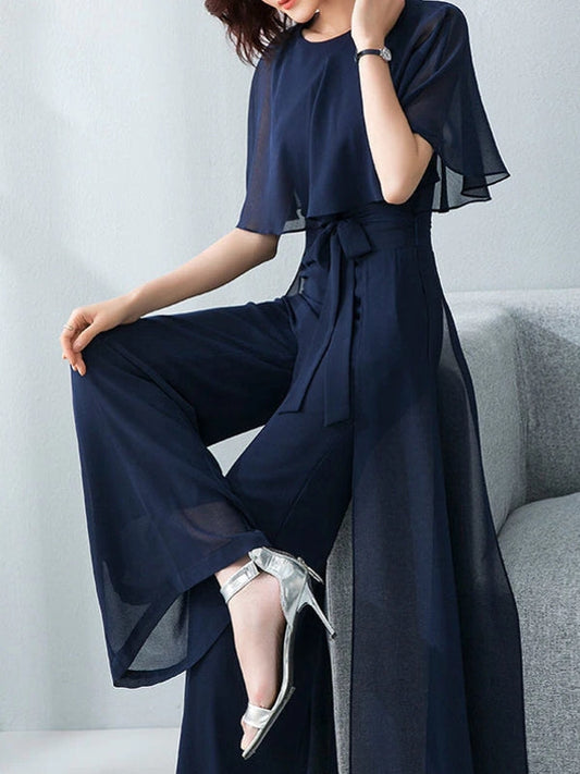 Women's Short Sleeve Wide Leg Party Jumpsuit